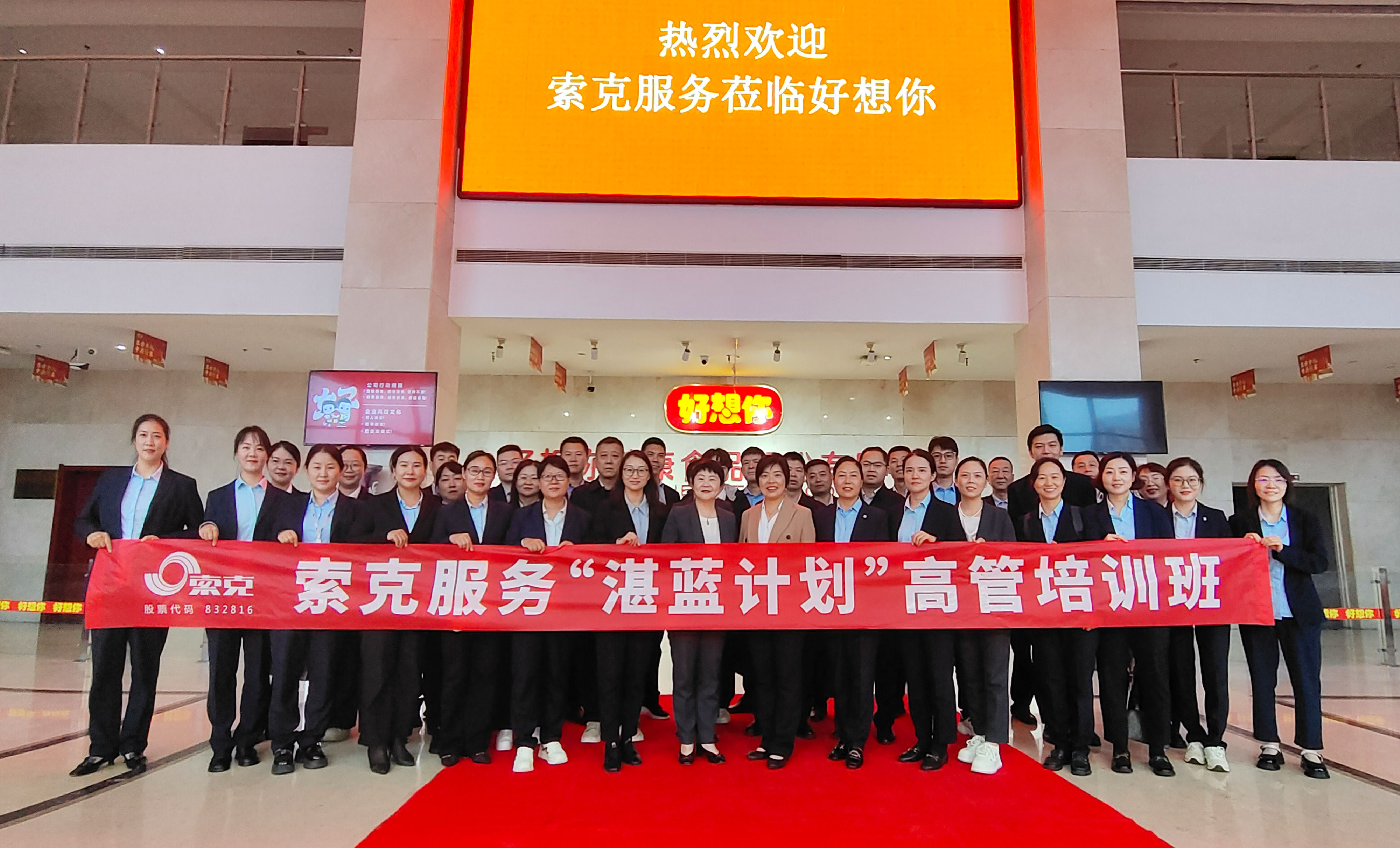 深化索克服务"湛蓝计划"培养目标,拓宽高层干部管理视野。9月28日,由索克科技服务股份有限公司总经理郝红梅带队,公司总监级及以上领导,各事业部总经理,省内分子公司总经理,总部各职能部门负责人,部分优秀项目经理代表一行,赴新郑好想你健康食品股份有限公司开展跨界交流学习。